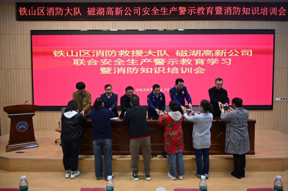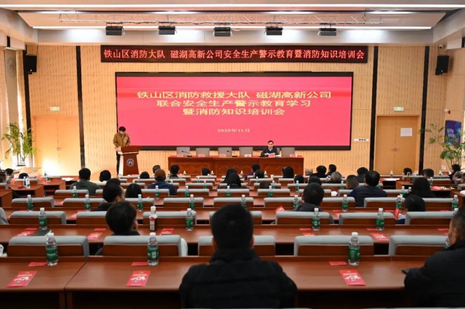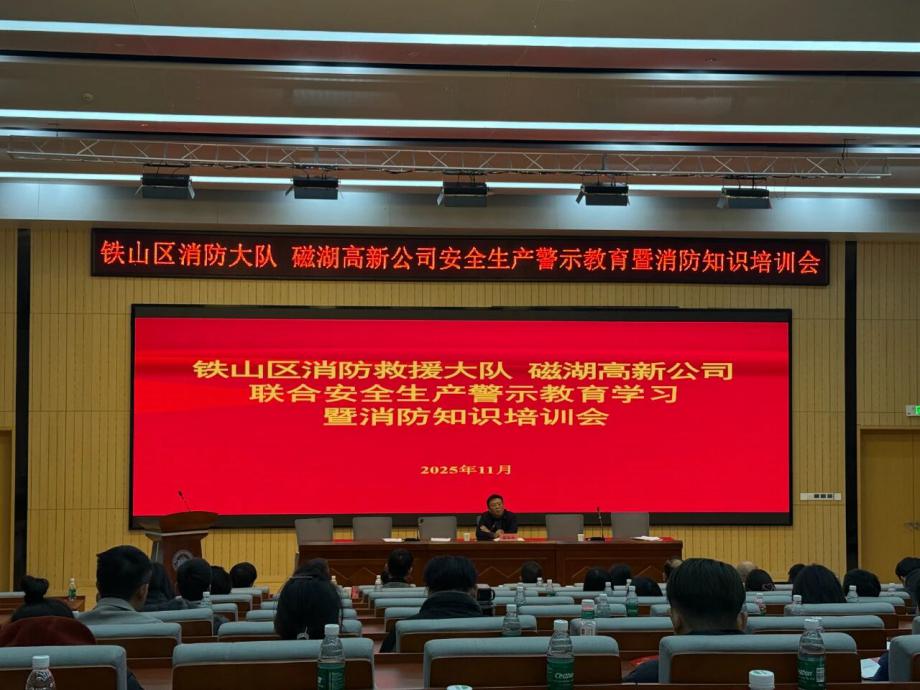 為深刻汲取近期火災(zāi)事故教訓(xùn),全面壓實安全生產(chǎn)責(zé)任,切實提升園區(qū)整體消防安全管理水平,營造“119消防宣傳月”濃厚氛圍,鐵山區(qū)消防救援大隊與磁湖高新公司于11月19日聯(lián)合舉辦安全生產(chǎn)警示教育學(xué)習(xí)暨消防知識培訓(xùn)會。會議聚焦“全民消防、生命至上——安全用火用電”主題,通過文件學(xué)習(xí)、警示教育、專業(yè)培訓(xùn)、責(zé)任落實與設(shè)備保障等多措并舉,為企業(yè)安全生產(chǎn)與商戶安全經(jīng)營注入強(qiáng)心劑。區(qū)消防救援大隊黨委書記徐耀,磁湖高新公司黨委副書記、總經(jīng)理蔡華中出席會議并講話,園區(qū)企業(yè)安全負(fù)責(zé)人、商業(yè)門面承租戶代表等150余人參加會議。