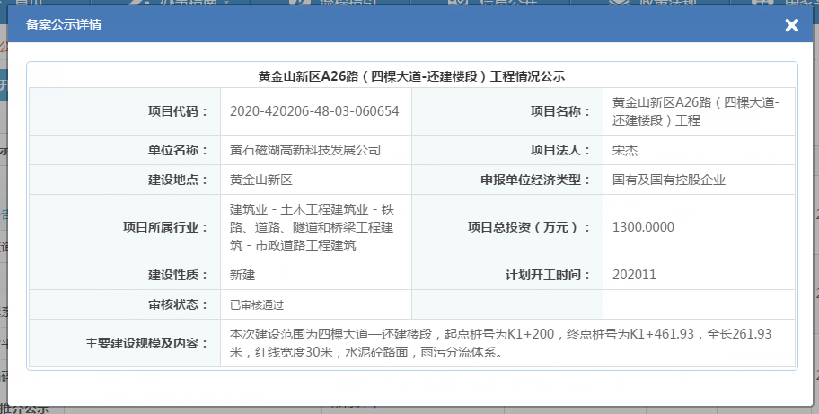 黃金山新區(qū)A26路(四棵大道-還建樓段)工程情況公示