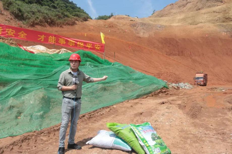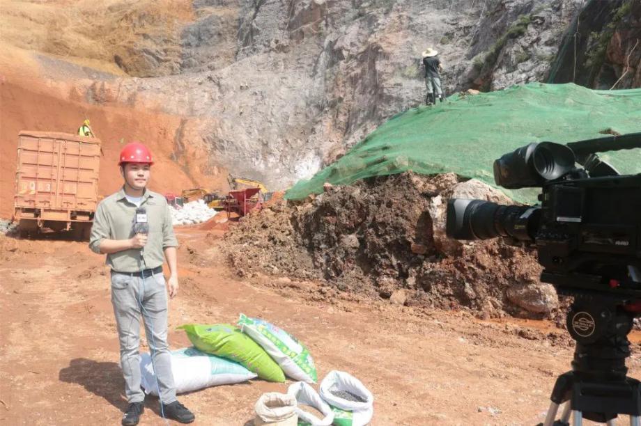 本次報(bào)道中,央視記者按照開山塘口修復(fù)的施工時(shí)間線,運(yùn)用了“灰、淡黃、棕褐、綠”這四種顏色,向觀眾形象、通俗地展現(xiàn)了開山塘口修復(fù)治理的全過程?;疑锹懵兜?、“受傷”的山,淡黃色是干草打碎后形成的草纖維,棕褐色是混入不同種子后的泥漿,綠色則是希望、是健康、是礦山修復(fù)的終極目標(biāo)。