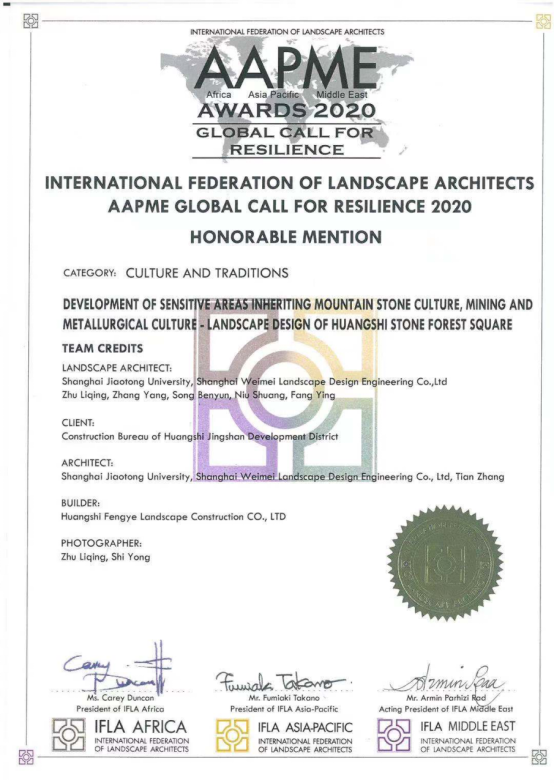 2020年,獲國際風(fēng)景園林師聯(lián)合會亞非中東地區(qū)榮譽獎。