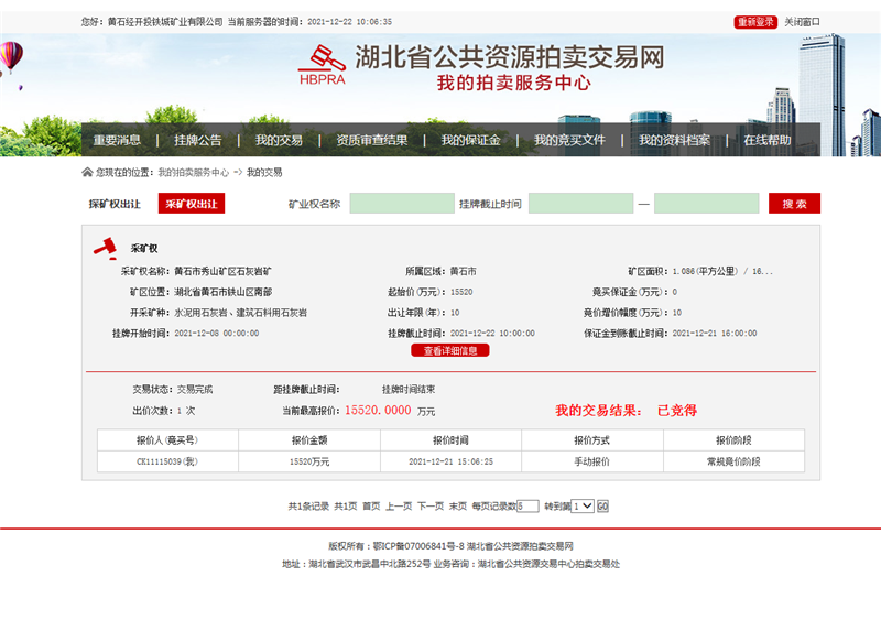 這是歷史性的時(shí)刻!12月22日上午10時(shí)許,黃石經(jīng)開投鐵城礦業(yè)有限公司以15520萬元的成交價(jià)競(jìng)得黃石市秀山礦區(qū)石灰?guī)r礦采礦權(quán),實(shí)現(xiàn)完美開局。