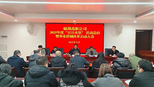 為實(shí)現(xiàn)“十四五”圓滿(mǎn)收官及“十五五”良好開(kāi)局,12月24日,磁湖高新公司召開(kāi)“百日攻堅(jiān)”總結(jié)暨事業(yè)群制改革啟動(dòng)運(yùn)行大會(huì)。公司黨委書(shū)記、董事長(zhǎng)王紹軍出席會(huì)議并講話(huà),黨委副書(shū)記、總經(jīng)理蔡華中主持會(huì)議。